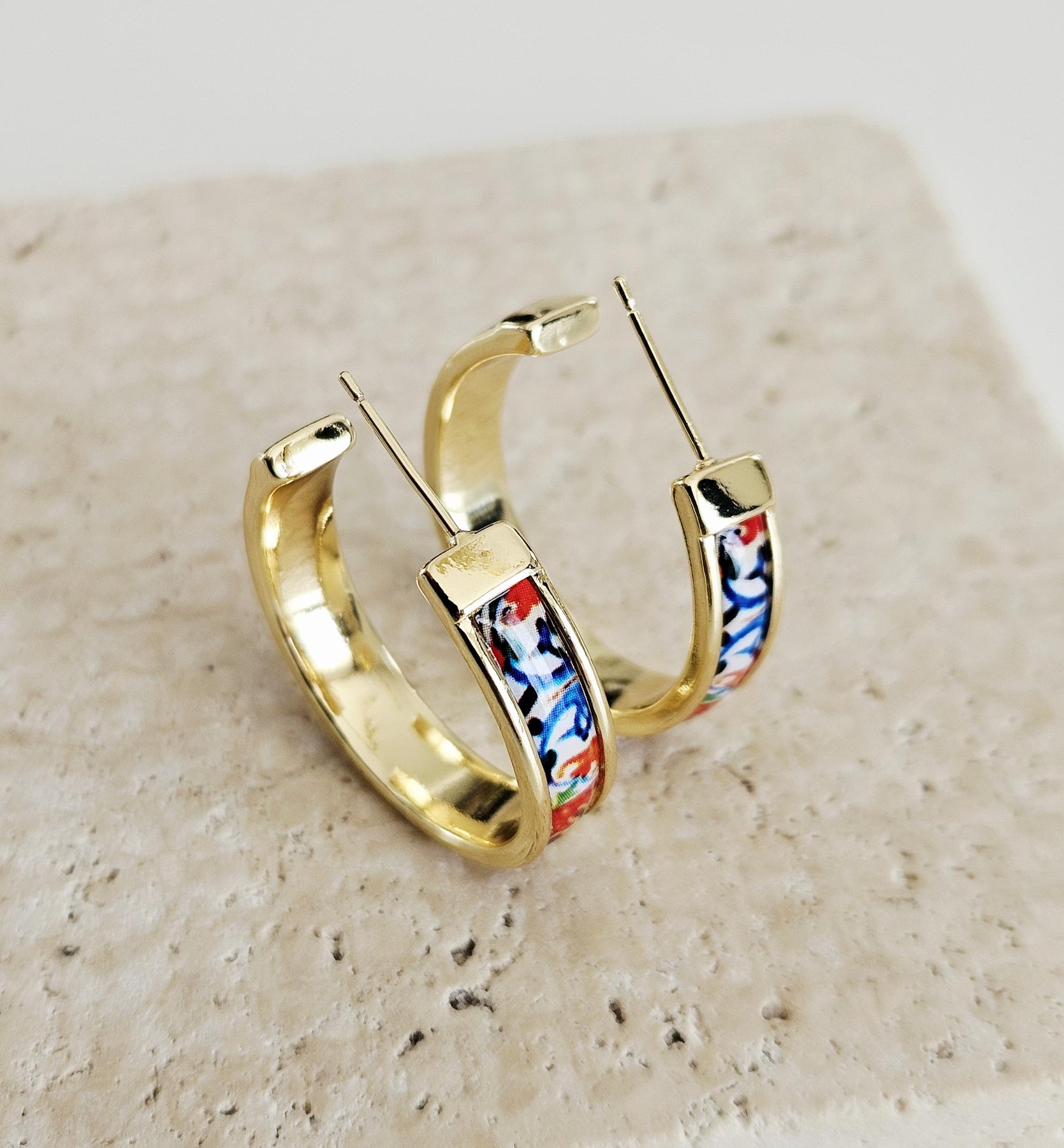 Hoop tile earrings handmade with stainless steel and Portuguese mixed tiles pattern.